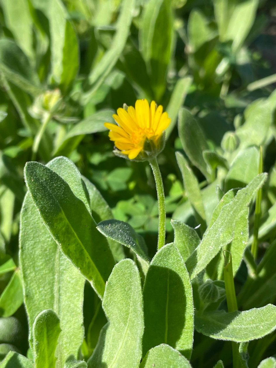 DESCRIPCIÓ: Planta molt fàcil de trobar ara en camps de cultiu o voreres de camins. Les tiges erectes o un poc ajagudes, pubescents i enganxoses són ben característiques. Però les seves inflorescències en capítols solitaris de 2 a 5 cm amb flors grogues, ligulades les de la perifèria, la fan inconfusible. S’obren amb la llum solar i es tanquen el capvespre amb la posta de sol. Els seus fruits són aquenis corbats, un poc espinosos i enganxosos, fet que facilita la seva dispersió per animals.