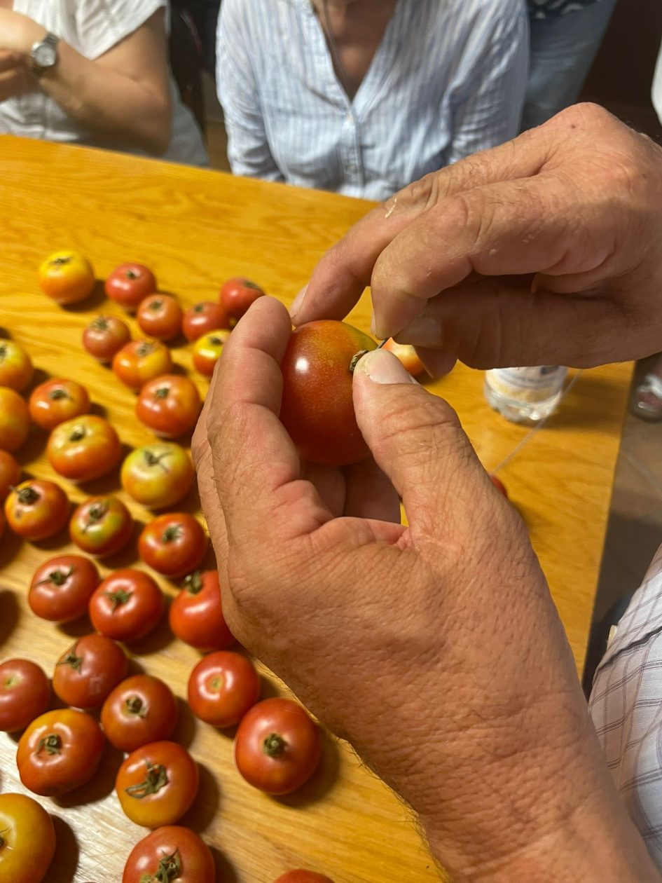 La jornada culminó con una actividad práctica muy especial: elaboramos un enfilall de tomates, recuperando la técnica tradicional de conservación que nos conecta con el saber de generaciones pasadas y con una forma de vida más autosuficiente y sostenible.