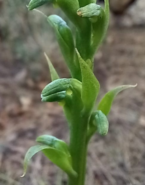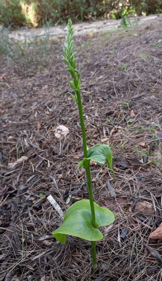 DESCRIPCIÓ: és una orquídia perenne d’arrel tuberculosa que es caracteritza per només tenir dues fulles, d’aquí li ve el nom de “diphylla”. Forma una tija erecta simple amb les dues fulles ovalades. La inflorescència és una espiga terminal densa, amb flors verdoses, no gaire vistoses.